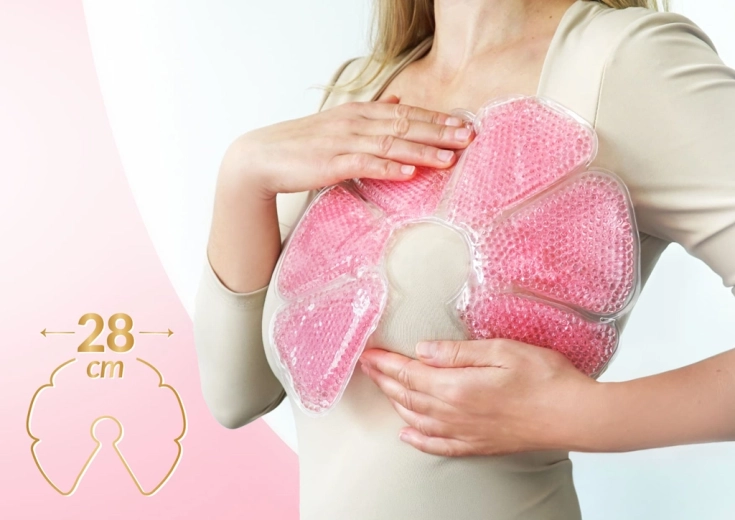 Ohladite v hladilniku ali zamrzovalniku in dosezite hitro olajšanje pri mastitisu, oteklinah in bolečini. Obkladek ostane prožen in se udobno prilega telesu.