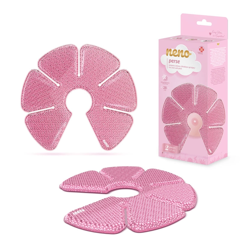 Neno Perse je mehak gelni obkladek za toplo in hladno terapijo, zasnovan za potrebe doječih mamic. Topla uporaba spodbuja pretok mleka in sprošča mlečne kanale, s čimer olajša dojenje in črpanje. Hlad pa zmanjšuje otekline in pomirja bolečino pri mastitisu ali prepolnih prsih. S premerom 28 cm pokrije veliko površino ter ostane prožen in udoben tudi po ohladitvi.