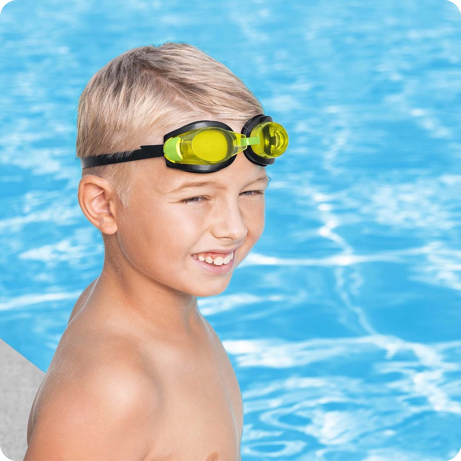 Iščete zanesljiva otroška plavalna očala za bazen in zunanje kopanje? Ta očala BESTWAY z rumeno toniranimi lečami ščitijo oči pred vodo in soncem, medtem ko mehko tesnjenje in prilagodljiv silikonski trak zagotavljata varen in udoben oprijem. Primerna so za otroke od 7 let, za trening, igro in prve plavalne korake.