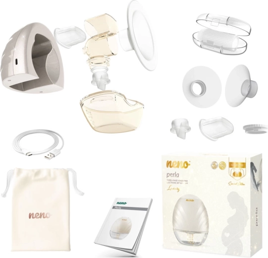 Del paketa so redukcije ščita 22 mm in 19 mm za popolno prilagoditev in največje udobje. Praktična steklenička 120 ml s pokrovčkom zagotavlja varno shranjevanje izčrpanega mleka. Zaradi samodejnega izklopa po 30 minutah, polnjenja prek USB-C in tihega delovanja je Neno Perla idealen spremljevalec doma in na poti.