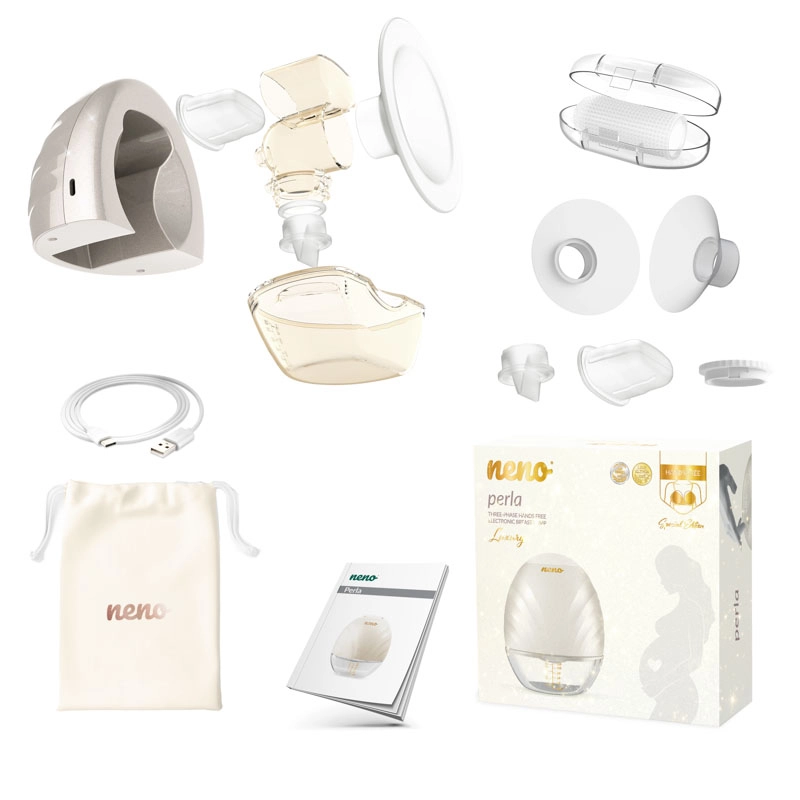 Neno Perla prinaša svobodo in udobje za sodobne mamice. Zaradi lahke zasnove in prostoročnega delovanja jo preprosto skrijete v nedrček in se lahko posvetite drugim opravilom. Trifazno črpanje z 9 stopnjami moči se prilagodi vašim potrebam, medtem ko anatomsko oblikovan ščit pod kotom 105° nežno sledi obliki dojke in podpira naraven pretok mleka.