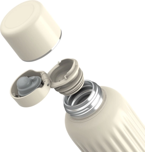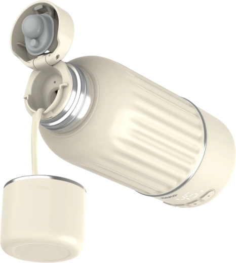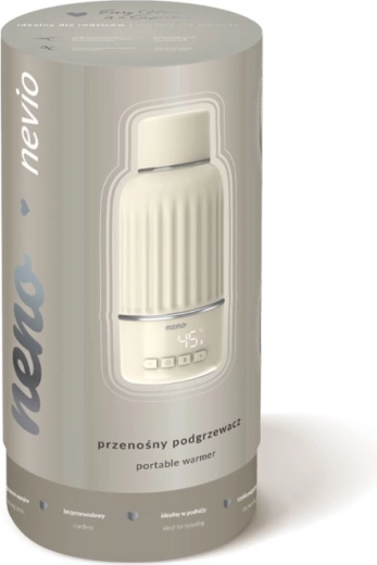 Praktična zasnova z rebrastim ohišjem za zanesljiv oprijem, ergonomski ustnik za čisto nalivanje brez kapljic in pokrov, ki ga je mogoče uporabiti kot kozarec, prihrani prostor v torbi. Nevio je idealen za segrevanje materinega mleka, vode za dojenčkov obrok ter priljubljenih pijač, kot sta čaj ali kava. Predčistilni način pri 65 °C pomaga pri higienskem izpiranju notranjosti pred uporabo.