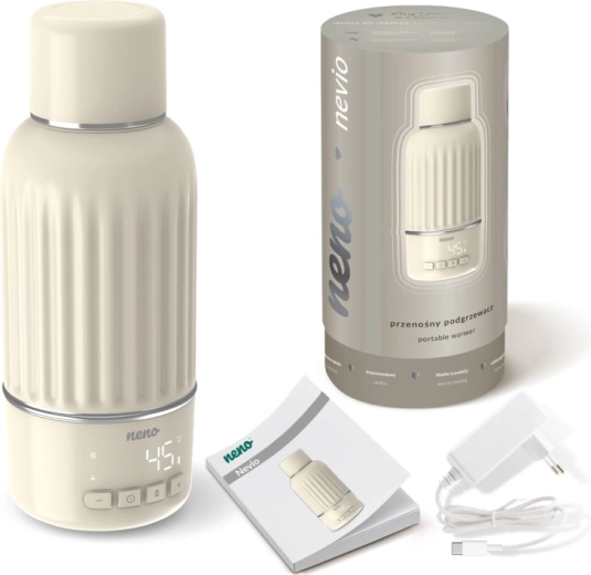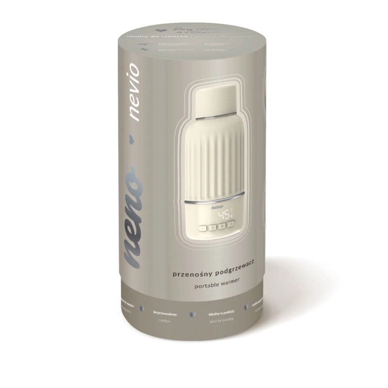 Neno Nevio je pameten pomočnik za udobno hranjenje kadarkoli in kjerkoli. Brez kablov, z intuitivnim upravljanjem in digitalnim zaslonom za natančno nastavitev temperature segreje 150 ml vode na 40 °C v samo 3 minutah. Velika prostornina 500 ml in varno dvojno tesnjenje ga naredita odlično rešitev za potovanja in dom.