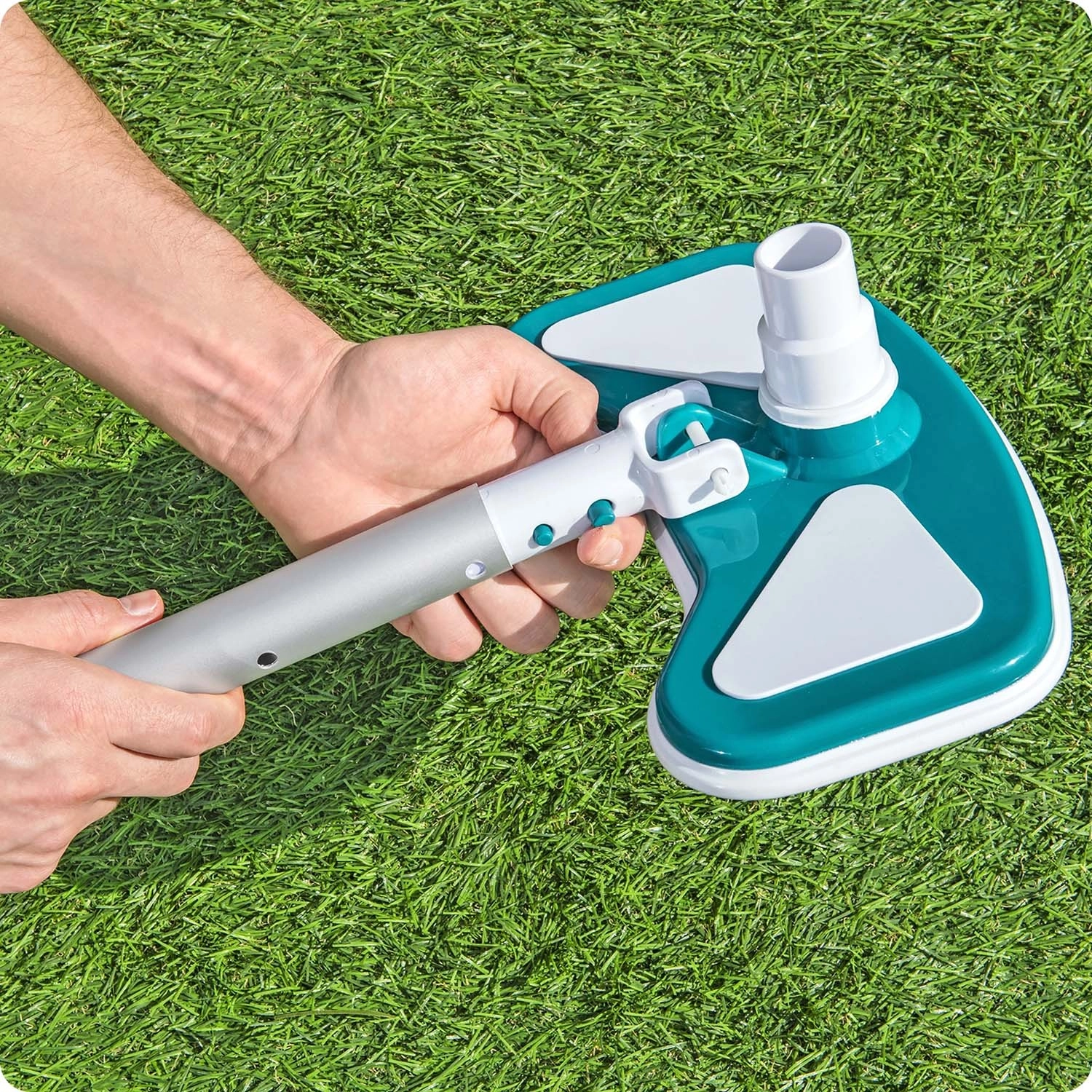 Sesalnik Bestway AquaClean je praktična rešitev za hitro in učinkovito čiščenje bazena. Široka sesalna osnova z gostimi ščetkami razrahlja in zajame usedline, medtem ko priklop na cev zagotovi zanesljiv odvod. Nizkoprofilna, enostavno vodljiva glava se gladko premika po dnu in v kotih.