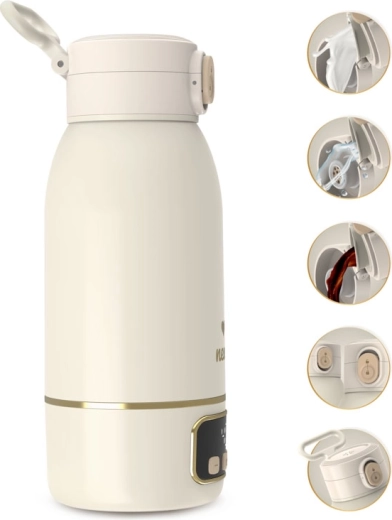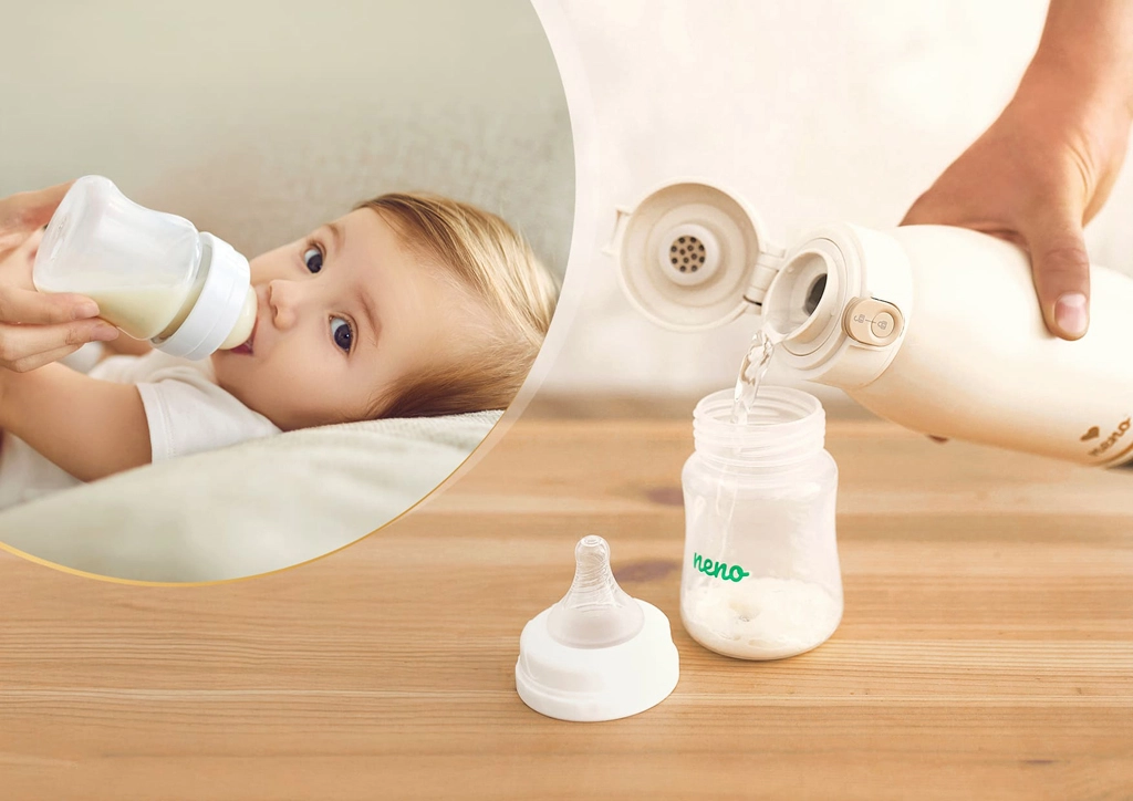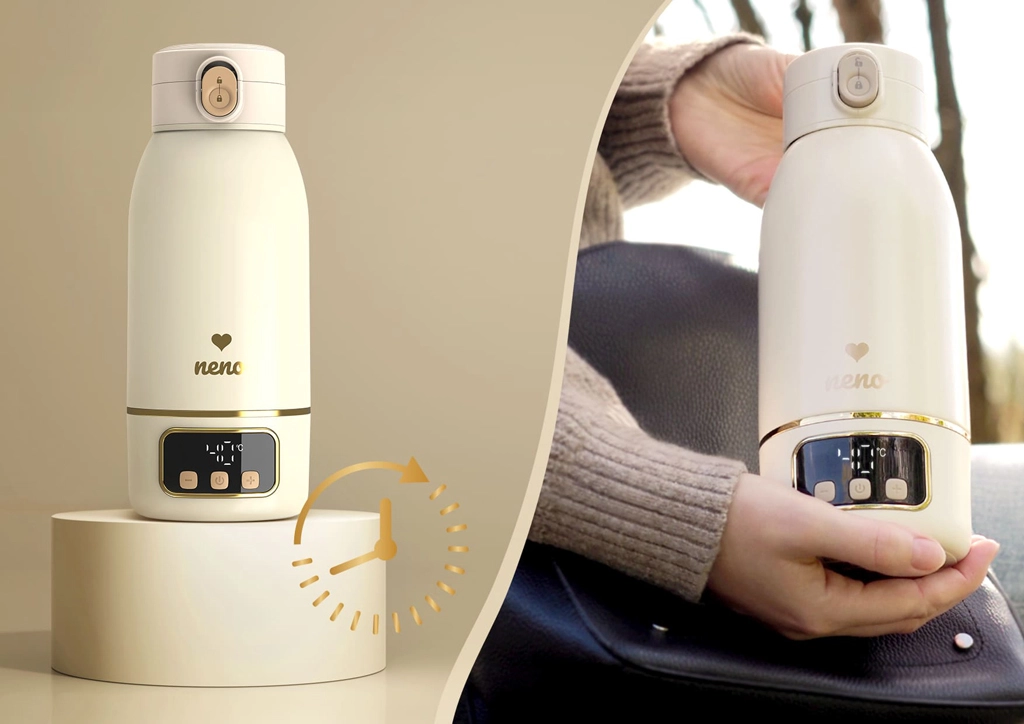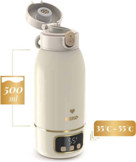 Potujte brez skrbi s prenosnim grelnikom Neno Savia, ki hitro segreva mleko ali vodo, ohranja stalno temperaturo 35–55 °C in na eno polnjenje omogoča do 8 segrevanj. Zahvaljujoč kompaktni velikosti, brezžičnemu delovanju, neprepustnemu pokrovu in kapaciteti 500 ml je idealen za izlete, voziček in celo za letalo.