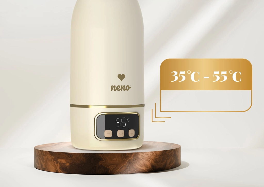 Digitalno upravljanje in razpon 35–55 °C omogočata nastavitev idealne temperature za materino mleko, vodo in napitke za starše.