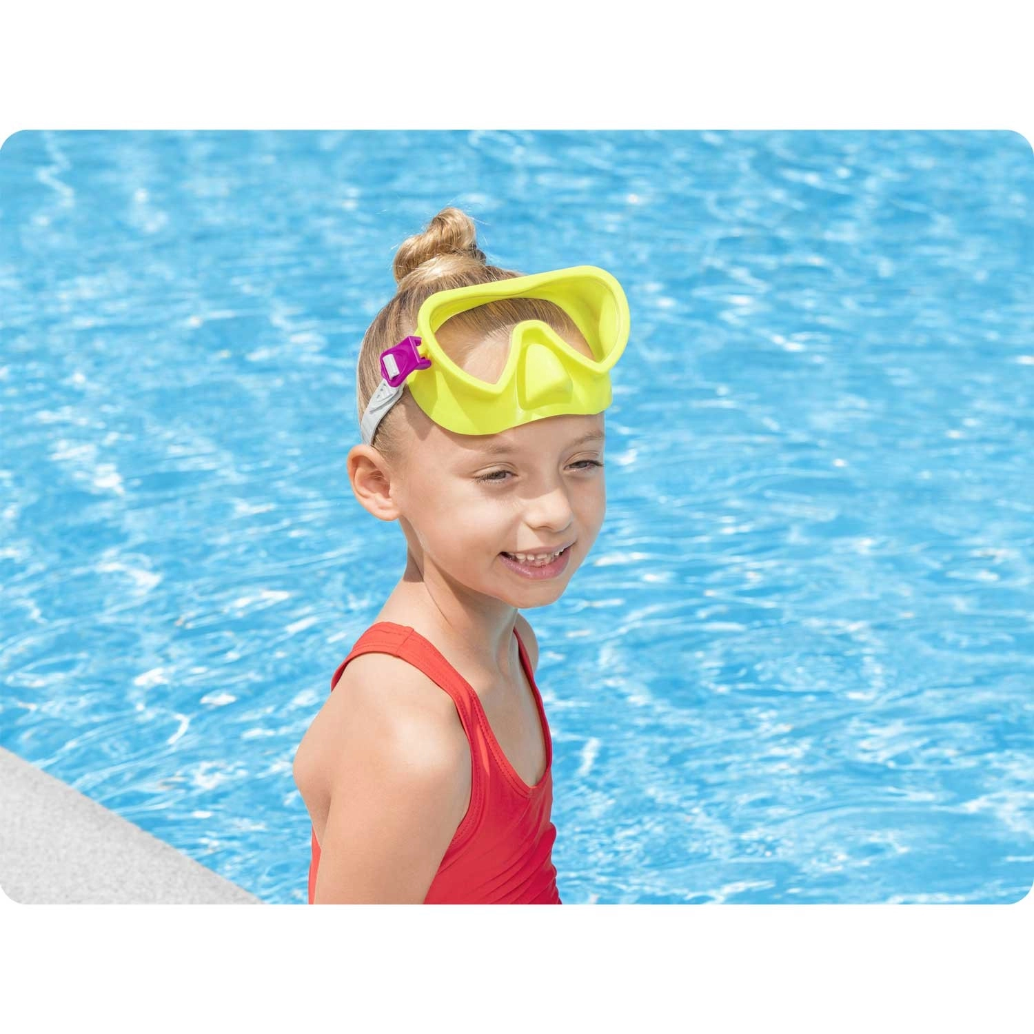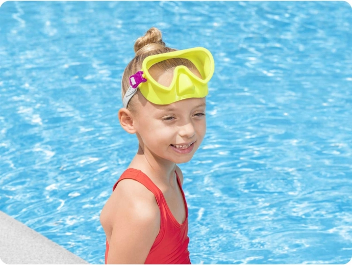 Uživajte v vodnih radostih z otroško potapljaško masko Bestway v živahni rumeni barvi. Ponuja široko vidno polje, udobno in tesno prileganje obrazu in zahvaljujoč nastavljivemu paščku vedno odlično drži. Polikarbonatno steklo z UV-zaščito zagotavlja jasen pogled pod gladino in varnost za oči.