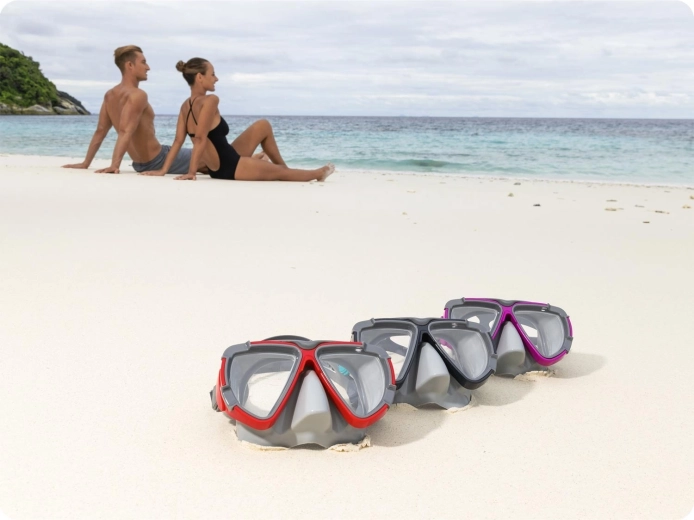Uživajte v brezskrbnem potapljanju na dih in plavanju s to udobno masko znamke Bestway. Zahvaljujoč polikarbonatnim lečam z UV-zaščito ponuja široko vidno polje in čist pogled pod vodo. Mehak silikonski rob se odlično prilega obrazu, nastavljiv pašček pa zagotavlja varno in tesno prileganje brez zamakanja.