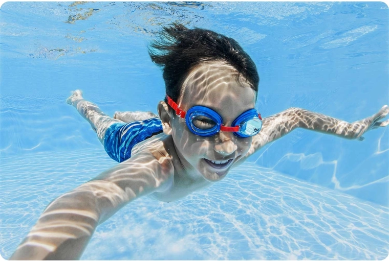 Prozorne hipoalergene leče zagotavljajo dobro vidljivost pod vodo, UV-zaščita pa pomaga ščititi otroške oči pri plavanju na soncu.