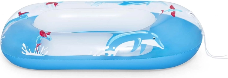 Uživajte v poletnih vragolijah z otroškim napihljivim čolnom BESTWAY z motivom delfinov. Je lahek, stabilen in izdelan iz trpežnega PVC-ja, zato je primeren za bazen in morje. Za udobje ima mehko napihljivo dno, oblazinjene stene ter za varno vodenje vlečno vrvico. Odličen za otroke od 3 do 6 let.