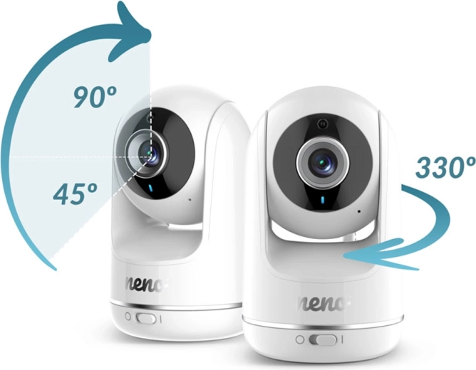 Vrtljiva kamera z vodoravnim in navpičnim nagibom ter priročnim zoomom vam nudi pregled nad posteljico in okolico. Izbirate lahko med stensko montažo ali pritrditvijo na prožen nosilec. Spremljanje temperature v prostoru, LED indikacija ravni hrupa in možnost povezave do 4 kamer naredijo Neno Vista za univerzalno izbiro za vsak dom.