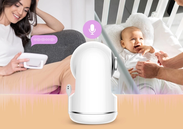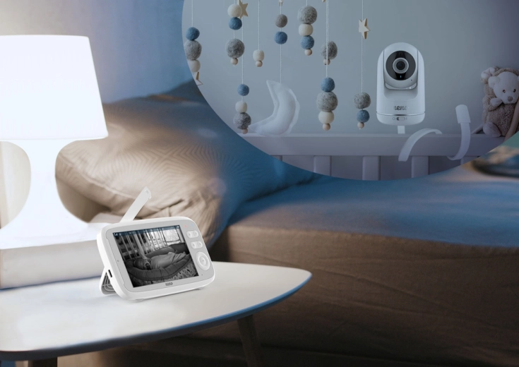 Vodoravni in navpični nagib z zoomom, vizualni LED prikazovalnik ravni hrupa ter funkcija talk-back vam omogočajo popoln nadzor in možnost, da otroka pomirite na daljavo.