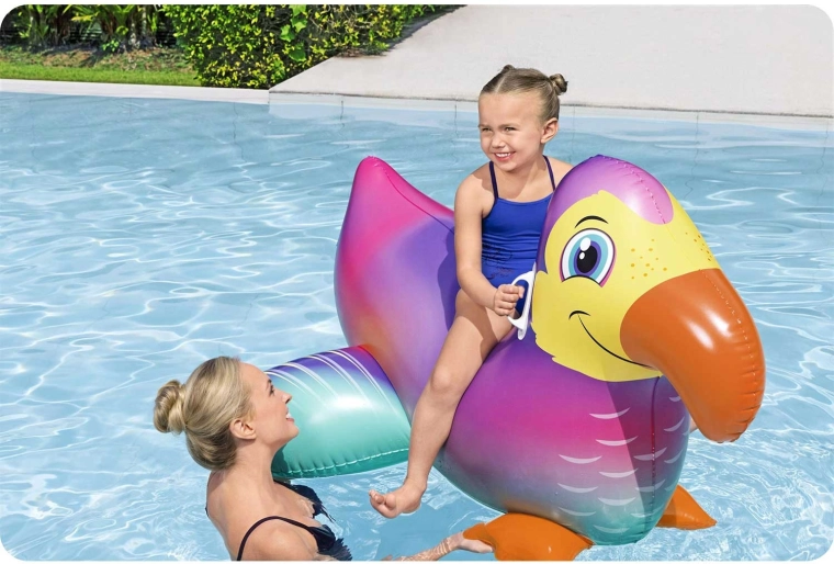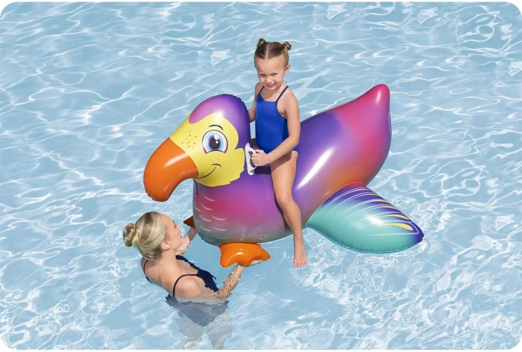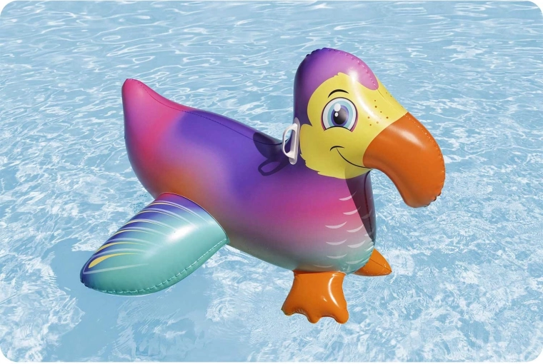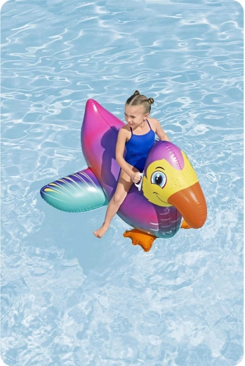 Napihljiv tukan Bestway je igriv in varen spremljevalec za vodne dogodivščine otrok od 3 let naprej. Zahvaljujoč velikemu telesu in uravnoteženi obliki je izjemno stabilen, medtem ko trdni ročaji omogočajo udobno sedenje in držanje med vožnjo. Barvit dizajn z izrazitim kljunom zagotovo pritegne pozornost na vsakem poletnem oddihu.