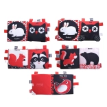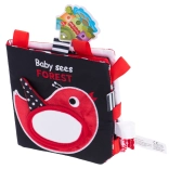 Pripravite svojega otroka na čarobno pot odkrivanja sveta oblik in vzorcev s to čudovito knjigo. Knjiga je oblikovana v kontrastnih barvah, kot so črna, bela in rdeča, ki so idealne za vizualno stimulacijo majhnih otrok. Knjiga vsebuje štiri tekstilne strani z živalmi, kot so ptiček, zajček, sova, lisica, medved, veverica in rakun.