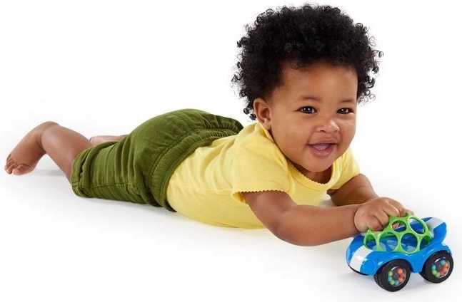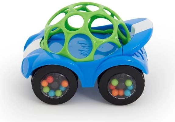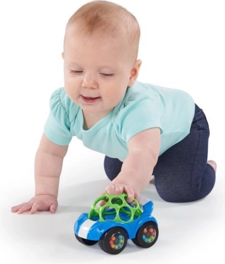 Modri ropotajoči avtomobilček OBALL Rattle & Roll prebuja radovednost in razvija čute. Zahvaljujoč prožni mrežici OBALL ga otroci zlahka primejo, potresejo in poženejo. Prozorna kolesa s širokimi komorami skrivajo barvne kroglice, ki ob gibanju ustvarjajo zabaven zvok – spodbujajo plazenje, kobacanje in prve korake.