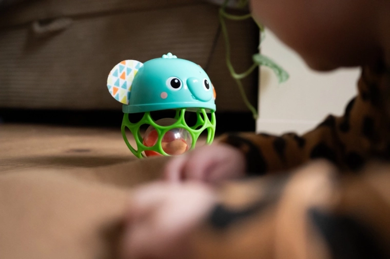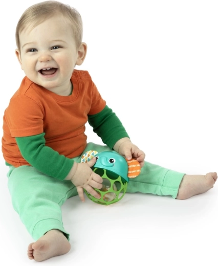 Prisrčni slonček OBALL Bright Starts Giggle & Glow razveseli vsakega dojenčka od 3 mesecev. Ob stresanju se sprožijo veseli zvoki in hihitanje, lica se zasvetijo in zabava je zagotovljena. Zahvaljujoč fleksibilni mrežasti konstrukciji OBALL je igrača enostavna za držanje, razvija fino motoriko in podpira razumevanje vzroka in posledice. Brez BPA, lahka, preprosta za čiščenje in idealna tudi za na pot.