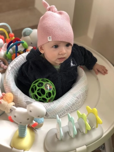 Varna, gladka in prožna plastika je prijazna do dlesni in prstkov. Žogica je praktično neuničljiva in idealna za vsakodnevno igro doma in na poti. Minimalistična zasnova podpira naravno učenje – prijemanje, podajanje, kotaljenje in prve usklajene gibe.