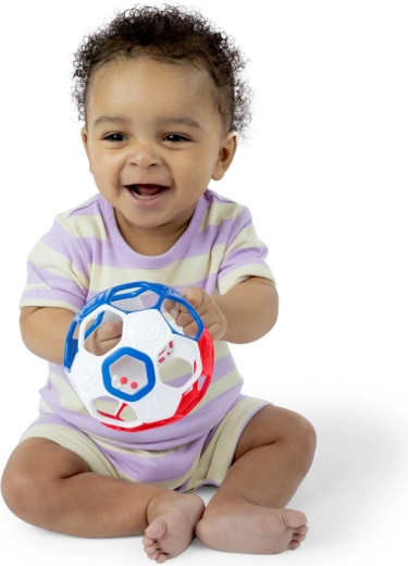 Igrača OBALL Rattle Goals je odlična prva žoga za novorojenčke in starejše otroke. Zahvaljujoč fleksibilni in trpežni konstrukciji z velikim številom odprtin jo zlahka držijo tudi najmanjše ročice. Ropotajoče kroglice v notranjosti spodbujajo otroka k gibanju, stresanju in odkrivanju novih zvokov.