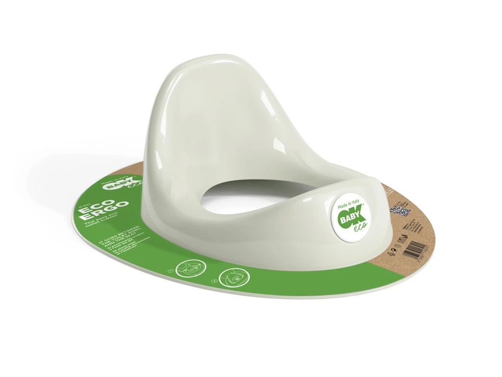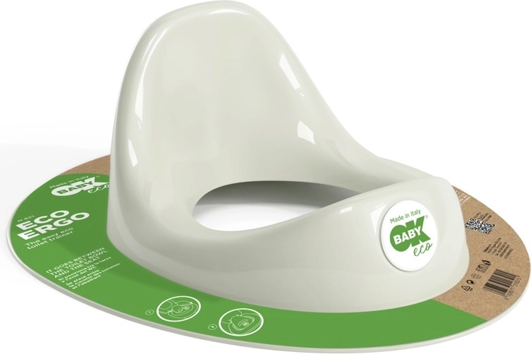 Praktična WC redukcija Ok Baby Ergo Eco+ otrokom olajša prehod z kahlice na stranišče. Izdelana je iz 98 % reciklirane plastike, varuje okolje in odlično ustreza večini stranišč. Ergonomično povišan sprednji del je primeren za dečke, redukcija se vstavi med školjko in desko in jo je zaradi odprtine mogoče preprosto obesiti. Kakovostna izdelava Made in Italy.