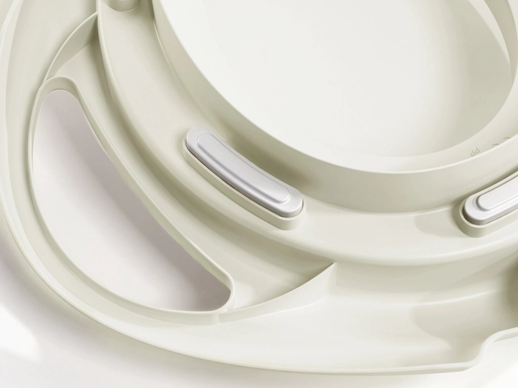 Spodnji del je opremljen z nedrsečimi kapicami, ki preprečujejo premikanje po WC deski. Gladke površine in odstranljiv vložek zagotavljajo hitro in enostavno vzdrževanje. Nastavek je lahek, trpežen in primeren za večino standardnih WC sedežev.