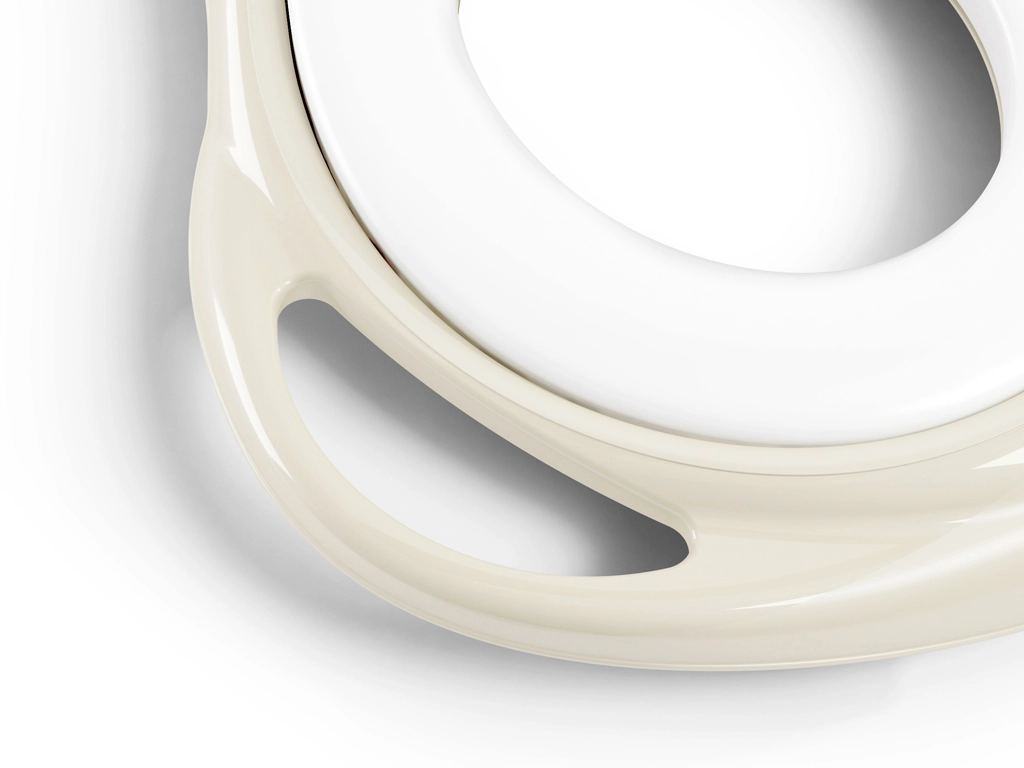 - Ergonomska zasnova – podpira pravilno držo in olajša prehod s kahlice.