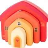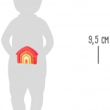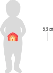 Ta motorična igrača v obliki hišice je sestavljena iz štirih lokastih delov, ki jih je mogoče vstavljati drugega v drugega ali zlagati enega na drugega. Preprosta zasnova, mehko zaobljeni robovi in topli leseni odtenki naredijo to igračo za stilski dodatek otroške sobe in odlično orodje za razvoj veščin.