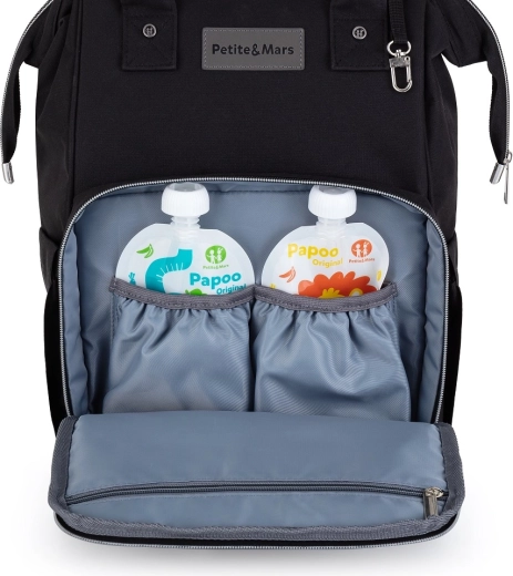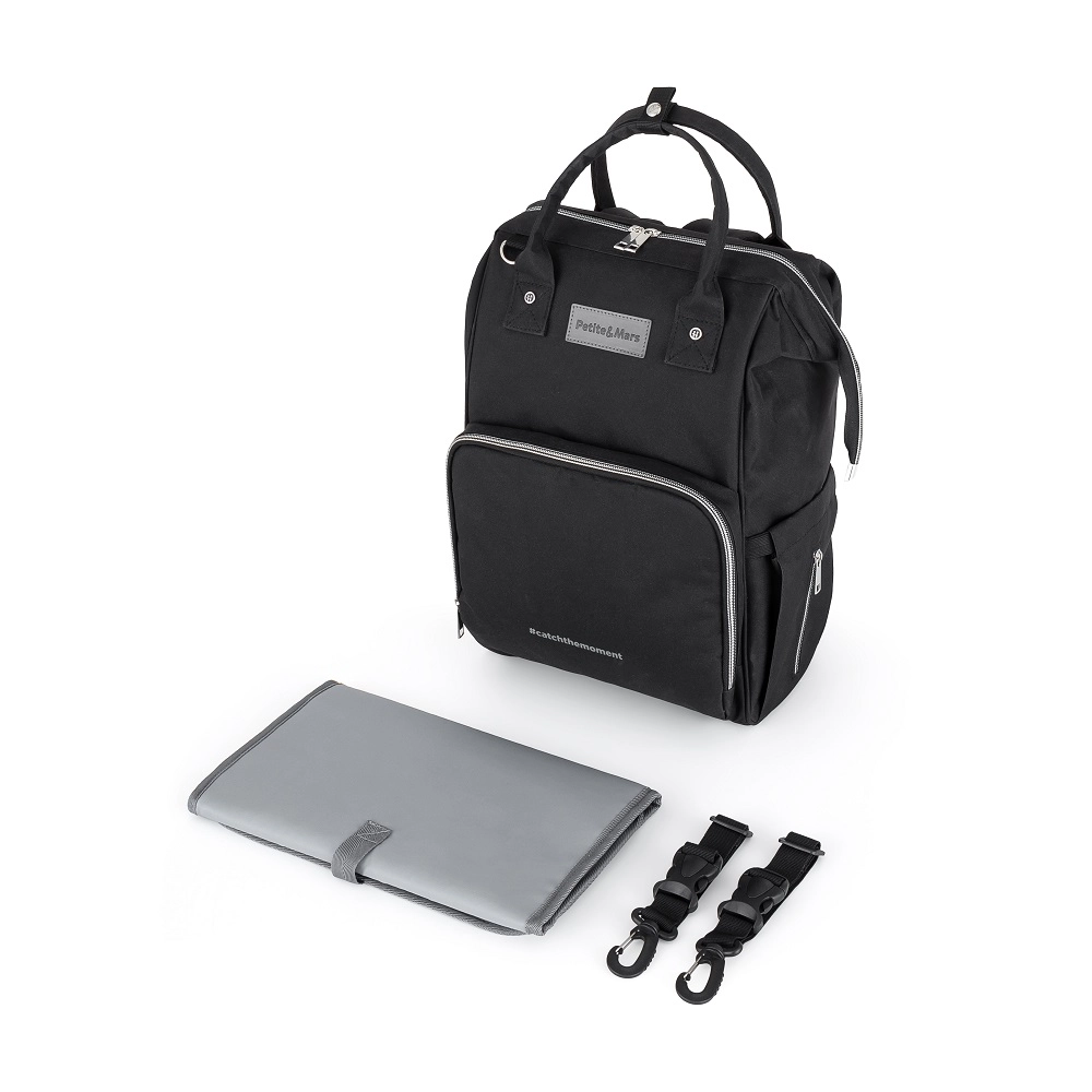 Previjalni nahrbtnik PETITE&MARS Jack je zasnovan tako, da vam olajša vsak dan na sprehodu ali na poti. Zahvaljujoč pametni razporeditvi in širokemu odpiranju boste zlahka organizirali vse za otroka in starše. Lahka konstrukcija, trpežen material in eleganten videz ga naredijo odličnega sopotnika za mamo in očeta.