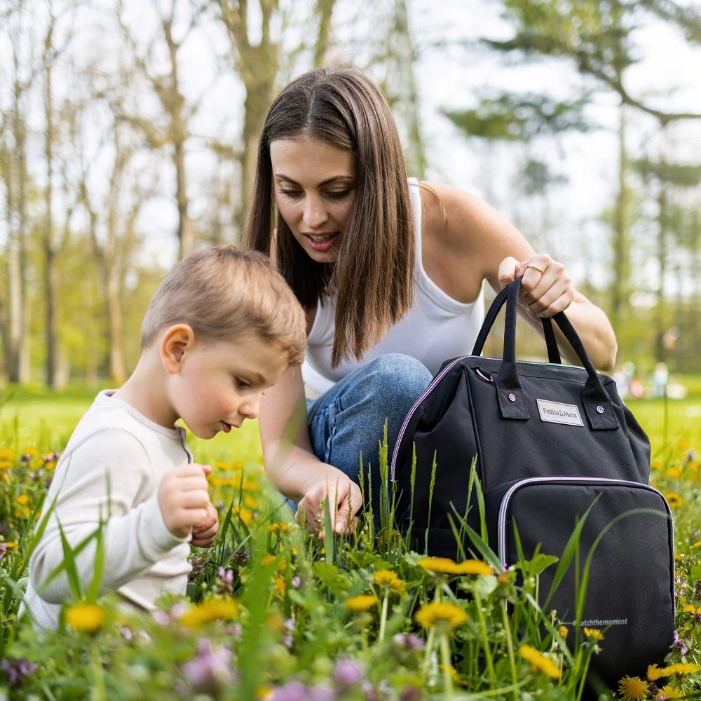 Uživajte v premišljenih podrobnostih: dva termožepa ohranjata stekleničke pri pravi temperaturi, vodotesni žep varno loči mokre stvari, vrvica za ključe pospeši iskanje in zadnja zadrga omogoča bliskovit dostop do glavnega predala. Nahrbtnik preprosto pritrdite na voziček ali na ročaj kovčka, svetla podloga pa poskrbi, da vedno hitro najdete, kar potrebujete.