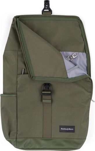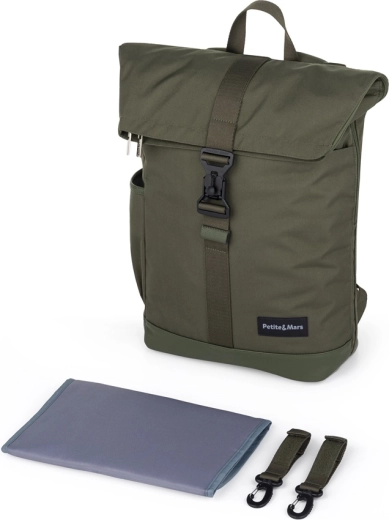 Organiziran, stilski in zanesljiv previjalni nahrbtnik PETITE&MARS JACKOB v odtenku Military Green ponuja zavihajoče zapiranje z magnetno zaponko FIDLOCK, široko stransko odpiranje na zadrgo in premišljeno notranjo razporeditev vključno s termo žepom, žepom za prenosnik in vodoodpornim vrečkom. Zahvaljujoč paščkom za pritrditev na voziček, lahki zasnovi in trpežnemu materialu je idealen za vsakodnevne sprehode in izlete.