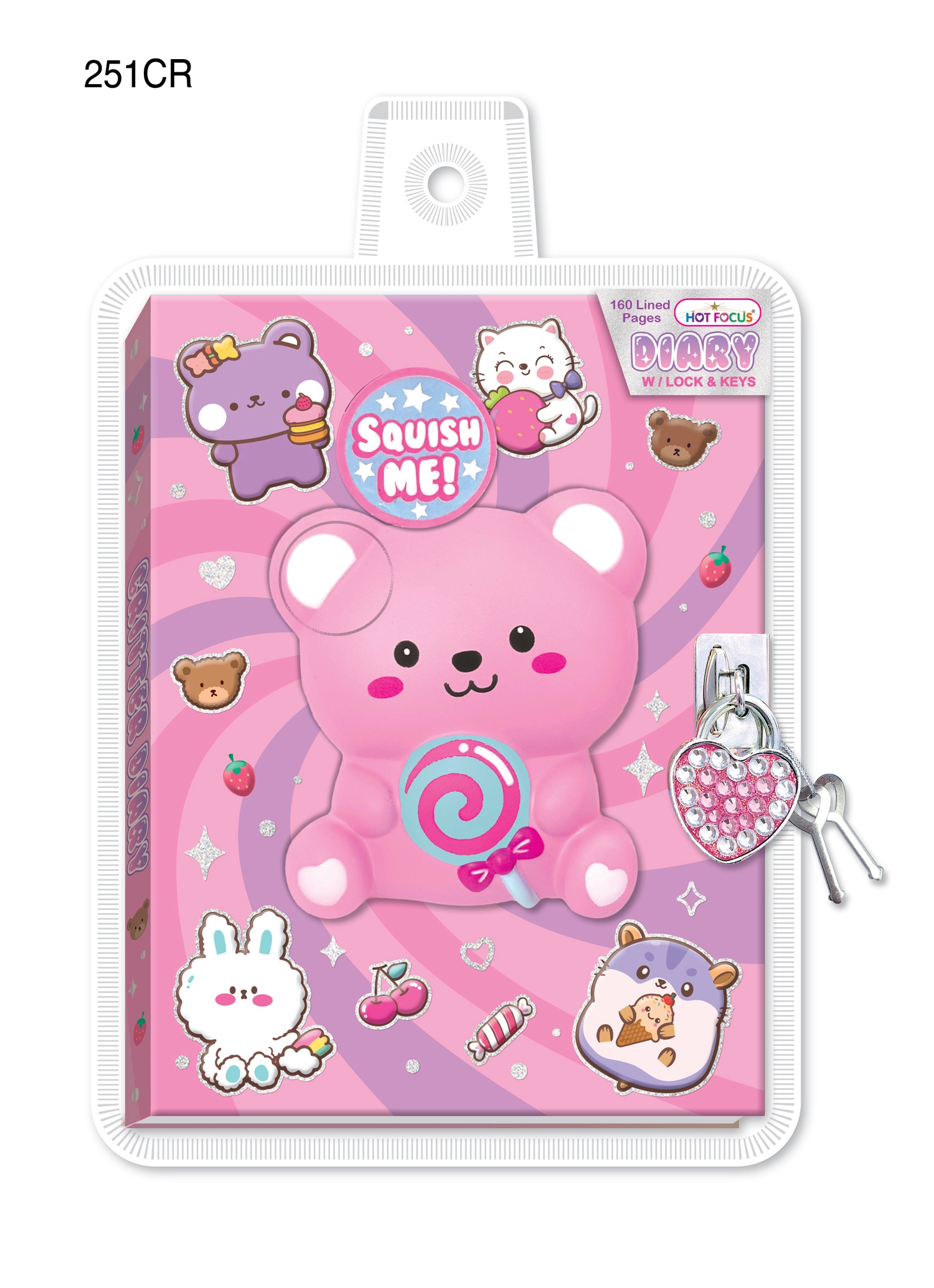 Prisrčen tajni dnevnik z ključavnico in motivom Sladki medvedek je idealen prostor za zapiske, risbe in majhne skrivnosti. Varna ključavnica varuje zasebnost, odporni materiali zagotavljajo dolgo življenjsko dobo, privlačna zasnova pa bo navdušila vsako malo pisateljico.