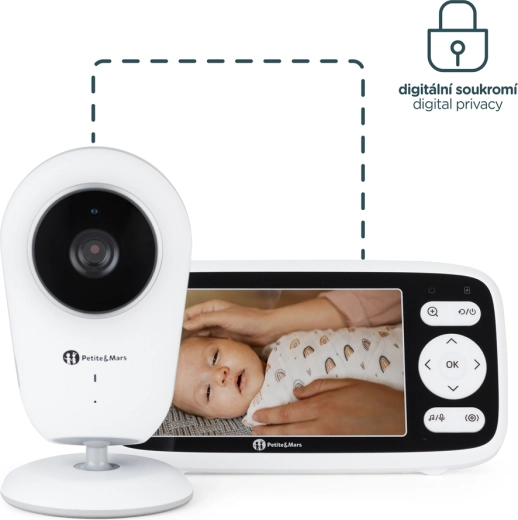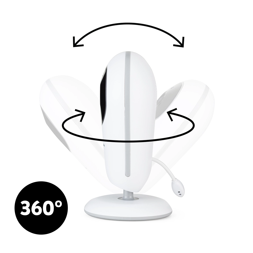 Zahvaljujoč zaprti digitalni povezavi varuška deluje brez Wi‑Fi, aplikacij in oblaka, zato ostane le pri vas – brez tveganja in brez zapletene namestitve. Praktične funkcije, kot so VOX (aktivacija z glasom), dvosmerna komunikacija, merjenje temperature, 8 uspavank in alarm za hranjenje ali zdravila, vam olajšajo vsak dan.