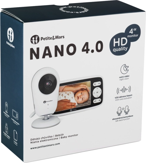Nadzirajte svojega dojenčka z absolutnim mirom. Nano 4.0 združuje 4" HD zaslon (720p) z nočnim vidom za čist prikaz podnevi in ponoči. 3× digitalna povečava približa vsak detajl brez motenja spanja, domet do 300 m pa vam omogoča gibanje po domu in vrtu brez izgube povezave.