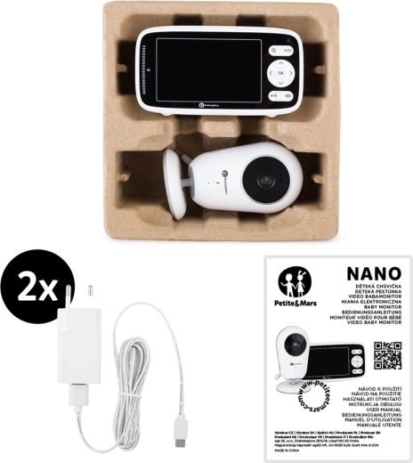 Starševska enota ima polnilno baterijo za brezžično uporabo, kamera se napaja iz omrežja in jo je mogoče uporabiti tudi s powerbankom za prilagodljivost na poti. Podprto je priključitev do 4 kamer za nadzor več prostorov.