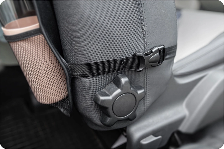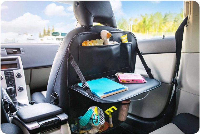 Montažo opravite v hipu z nastavljivimi trakovi. Otroci imajo vse pri roki – tablico, prigrizke, steklenico in najljubše igrače – vi pa vozite v miru. Idealno za dolge poti in vsakodnevne vožnje.