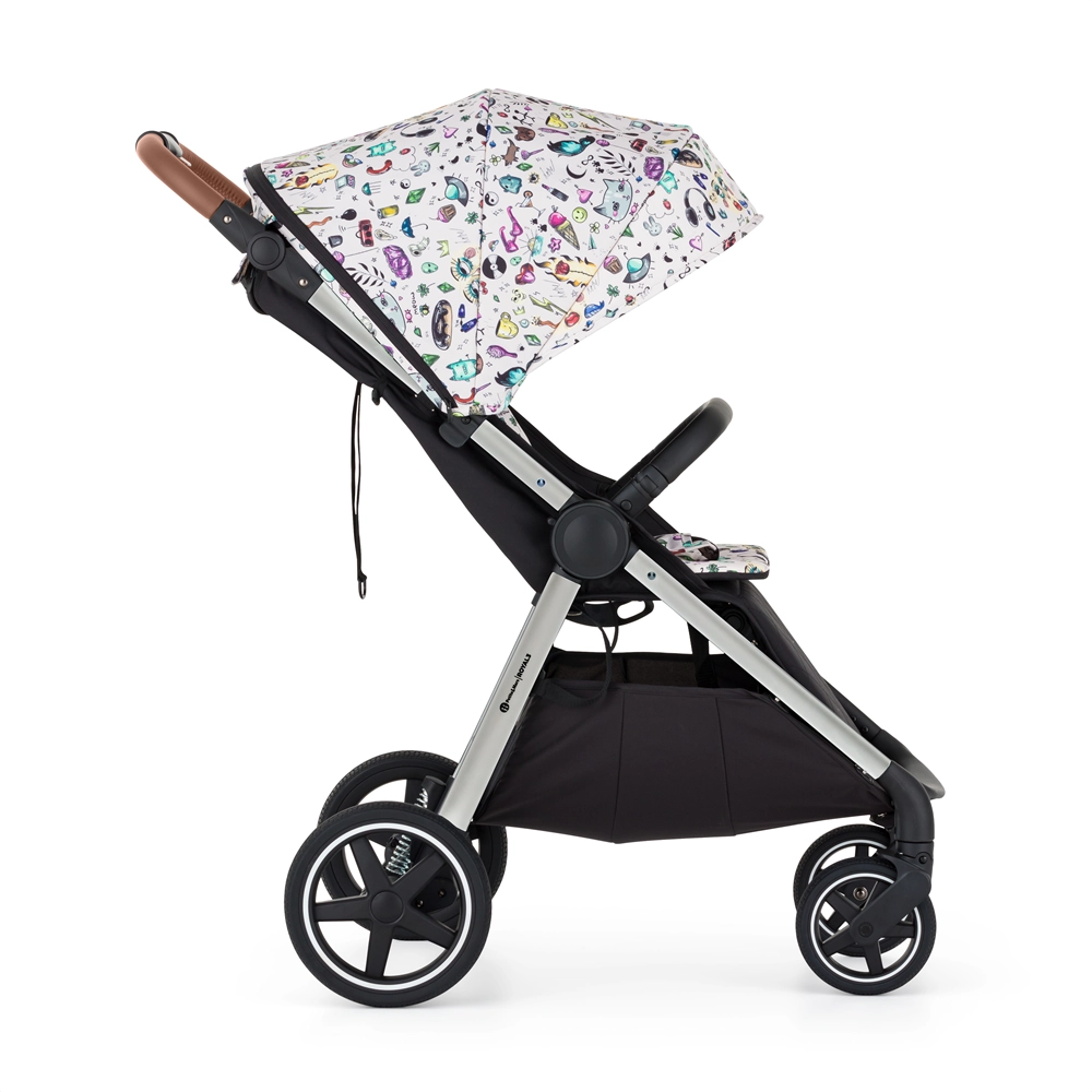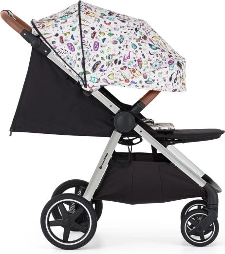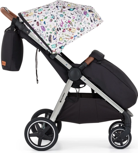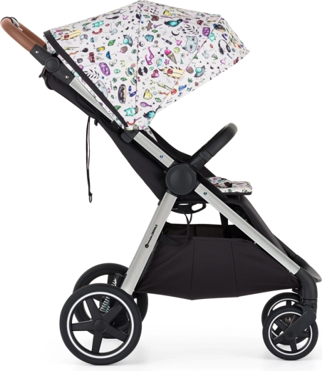 Starši bodo cenili preprosto zlaganje z eno roko navznoter (prevleka ostane čista), vrtljiv in snemljiv varovalni lok, magnetno zaponko ter po višini nastavljiv ročaj. Otrok mirneje spi zahvaljujoč dolgemu naslonu za hrbet, nastavitvi v skoraj popoln ležeč položaj in ekstra dolgi strešici s SPF 50 ter tihim magnetnim okencem. Velika košara, previjalna torba in odeja za noge tvorijo praktično opremo za vsak dan.