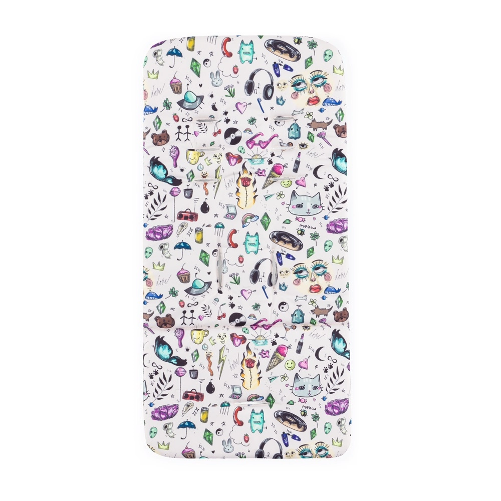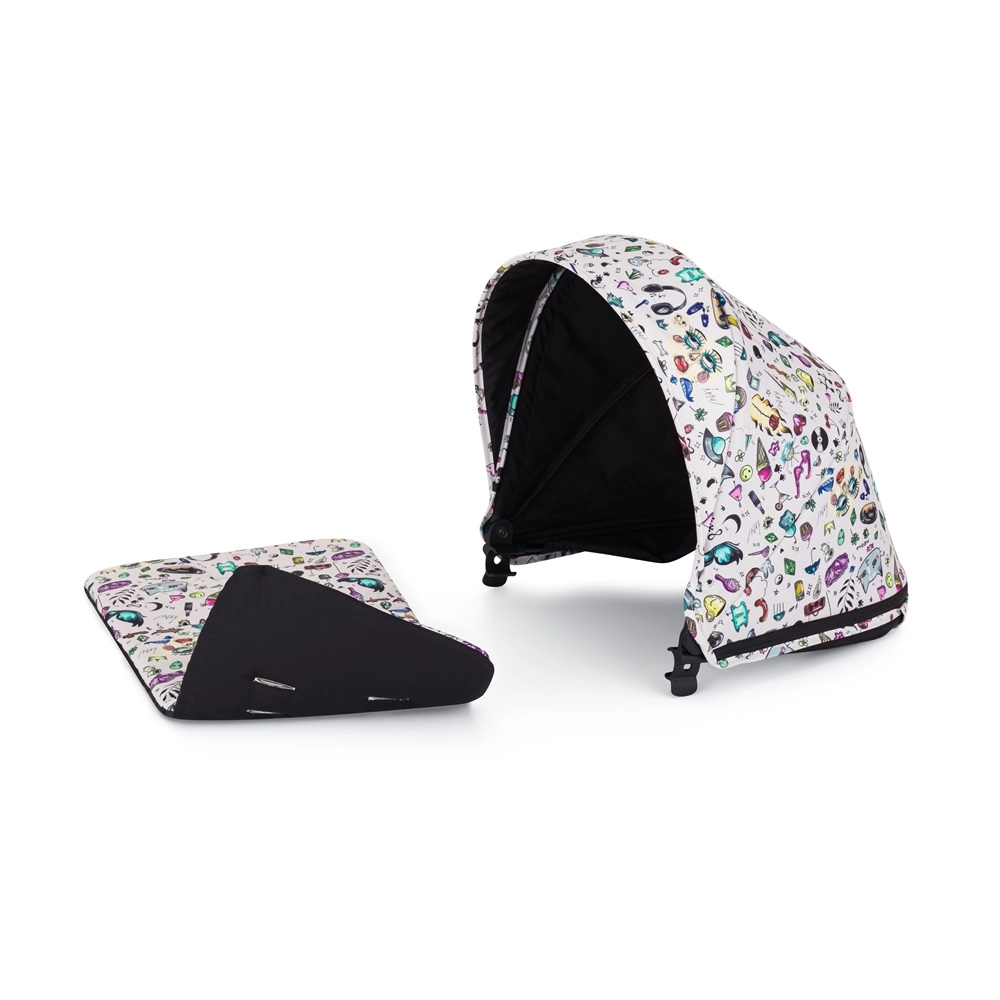 - ogrodje, sprednja in zadnja polna gumirana kolesa, prevleka sedeža, previjalna torba, črna odeja za noge, strešica, vložek za voziček z vzorcem Tattoo, 3-delno oblazinjenje