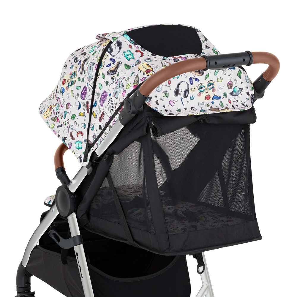 Omejena kolekcija Limited 100 prinaša v mesta in naravo svež dizajn mladih ustvarjalcev. Royal 3 v različici Silver Tattoo navduši s čvrstim aluminijastim ogrodjem v elegantni izvedbi, rjavimi detajli iz eko usnja in praktičnimi polnimi gumiranimi kolesi s stilskim belim robom. Zahvaljujoč sistemu Panoramic Ventilation je voziček prezračevan z treh strani, zato otroku nudi prijetno klimo tudi v vročini.