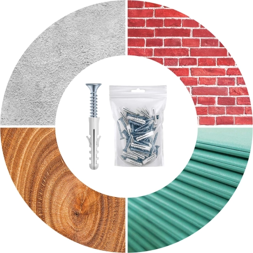V paketu najdete univerzalne vložke in vijake za montažo v beton, opeko, les in pločevino. Hitra namestitev in stabilna pritrditev.