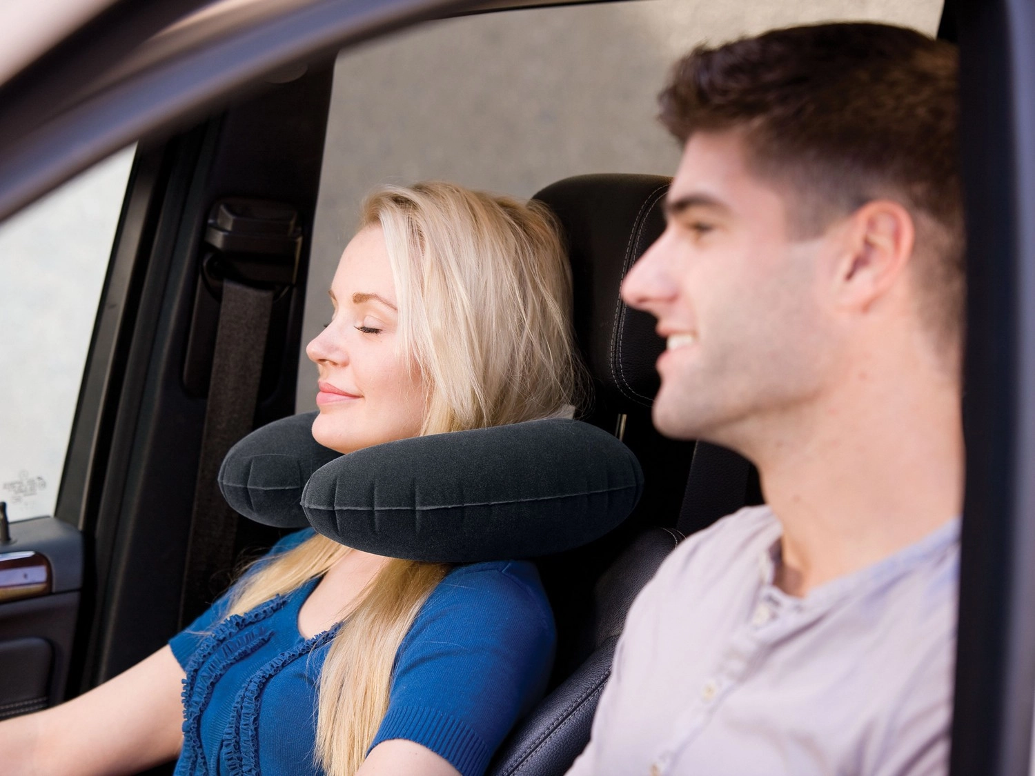 Uživajte v udobju na poteh z lahkim in zložljivim vzglavnikom INTEX. Mehak flokiran (velurjev) zaključek je prijeten na dotik in preprečuje drsenje, medtem ko oblika nudi nežno oporo vratni hrbtenici pri sedenju v letalu, avtomobilu ali vlaku.
