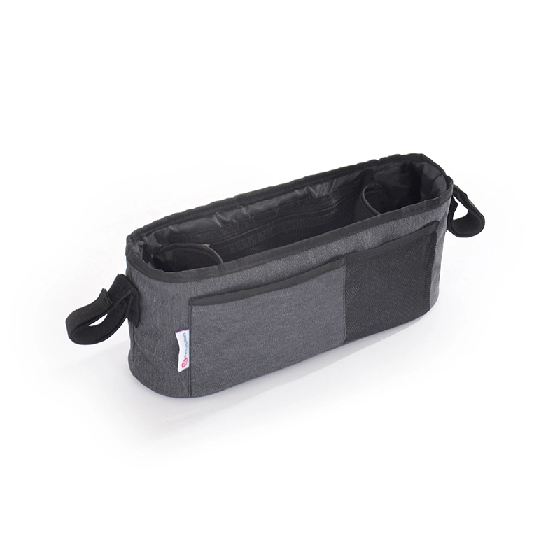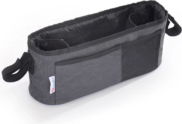 Praktičen organizator za voziček z nastavljivimi trakovi in ježki poskrbi, da imate vse nujne stvari pregledno pri roki. Ponuja prostorno notranjost z dvodelnim držalom za pijačo, velikim sredinskim predalom in dvema sprednjima žepoma. Zahvaljujoč univerzalnemu pritrjevanju je primeren za večino vozičkov in ima največjo nosilnost 2 kg.