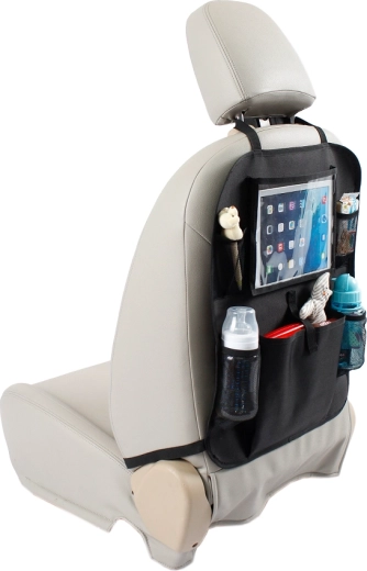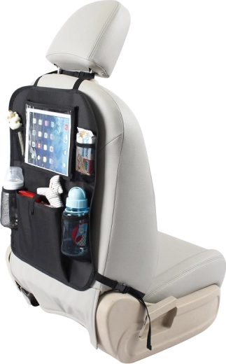 Pametna razporeditev žepov pomaga ohranjati red: spodaj globlji žepi za steklenice z vodo, zgoraj manjši za drobnarije, na sredini pa izjemno velik predal za igrače ali malico. Trpežen material in preprosto vzdrževanje sta idealna za vsakodnevno uporabo v skoraj katerem koli avtomobilu.