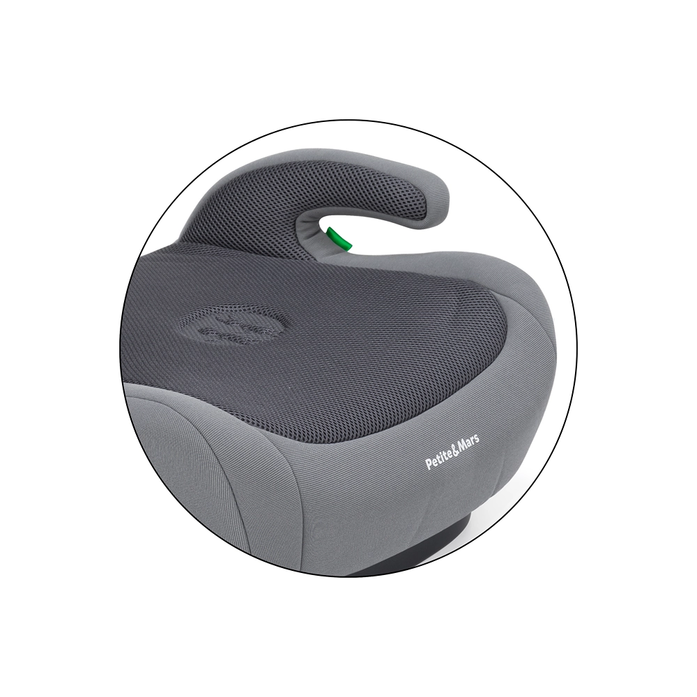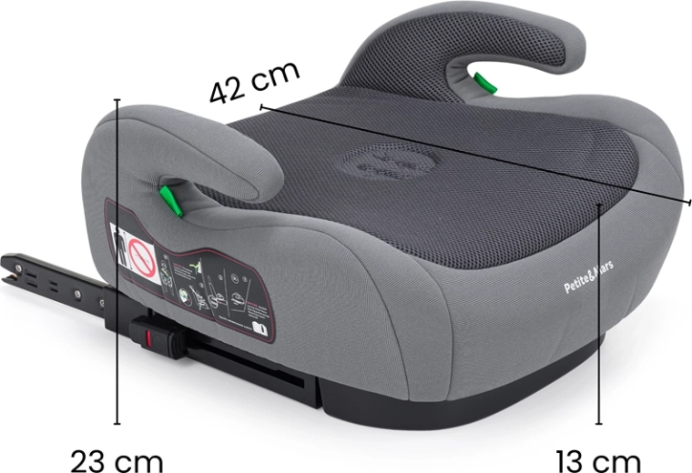 Jahač PETITE&MARS Optimus Pro i-Size Grey Air je zanesljiva rešitev za starejše otroke, ki že uporabljajo tritočkovni varnostni pas vozila. Zahvaljujoč trdnemu ISOFIX pritrjevanju iz nerjavnega jekla ostaja stabilen tudi pri nenadnem zaviranju in pomaga pravilno nastaviti višino sedenja za varno vodenje pasu.