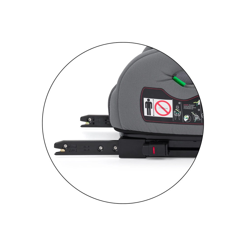Vgrajeni ISOFIX priključki zagotavljajo trdno in hitro namestitev, ki preprečuje premikanje jahača in povečuje varnost pri zaviranju.