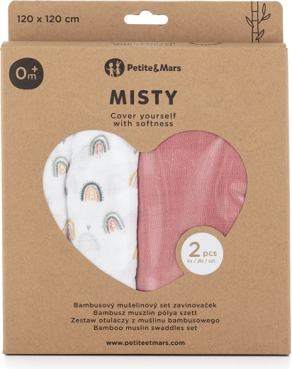 Odkrijte izjemno mehke in zračne bambusove muslin plenice PETITE&MARS v velikosti 120 × 120 cm. V kompletu 2 kosa – enobarvna Misty Rose in bela z mavričnim potiskom. Idealne za povijanje, prekrivanje, brisanje in diskretno dojenje. Hipoalergena mešanica 70 % bambus in 30 % bombaž s certifikatom OEKO-TEX Standard 100 je nežna do najobčutljivejše dojenčkove kože.