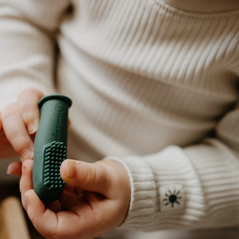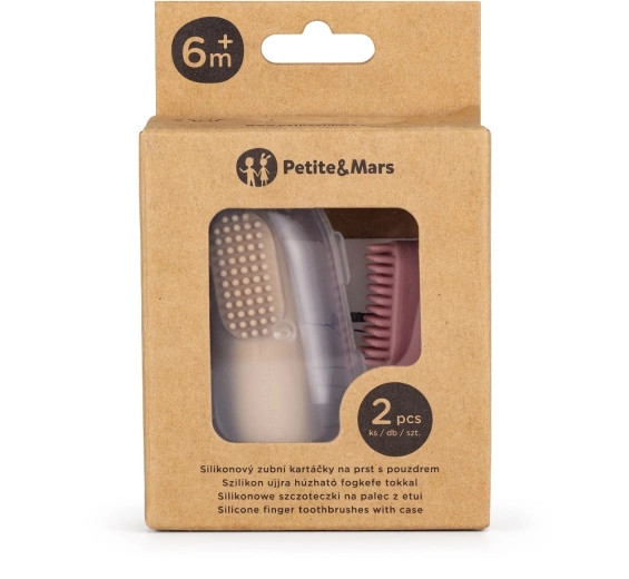 Set silikonskih prstnih ščetk PETITE&MARS je zasnovan za nežno in učinkovito nego otroških ust. Mehke ščetine in drobni izrastki odstranjujejo nečistoče s prvih zobkov ter hkrati masirajo občutljive dlesni med izraščanjem. Z ergonomsko namestitvijo na prst starša imate nad čiščenjem največji nadzor in otroku zagotovite prijetno, pomirjujočo izkušnjo.