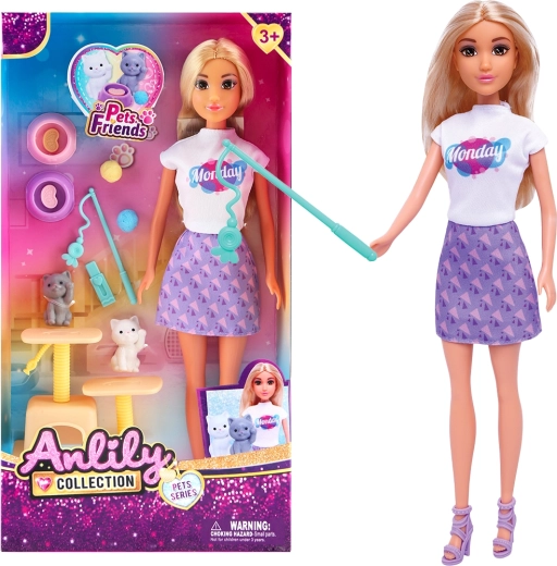 Idealen darilo za deklice od 3 let, ki imajo rade punčke in živali. Pakiranje vsebuje vse potrebno za takojšnjo igro: punčko, mucke in praskalnik.