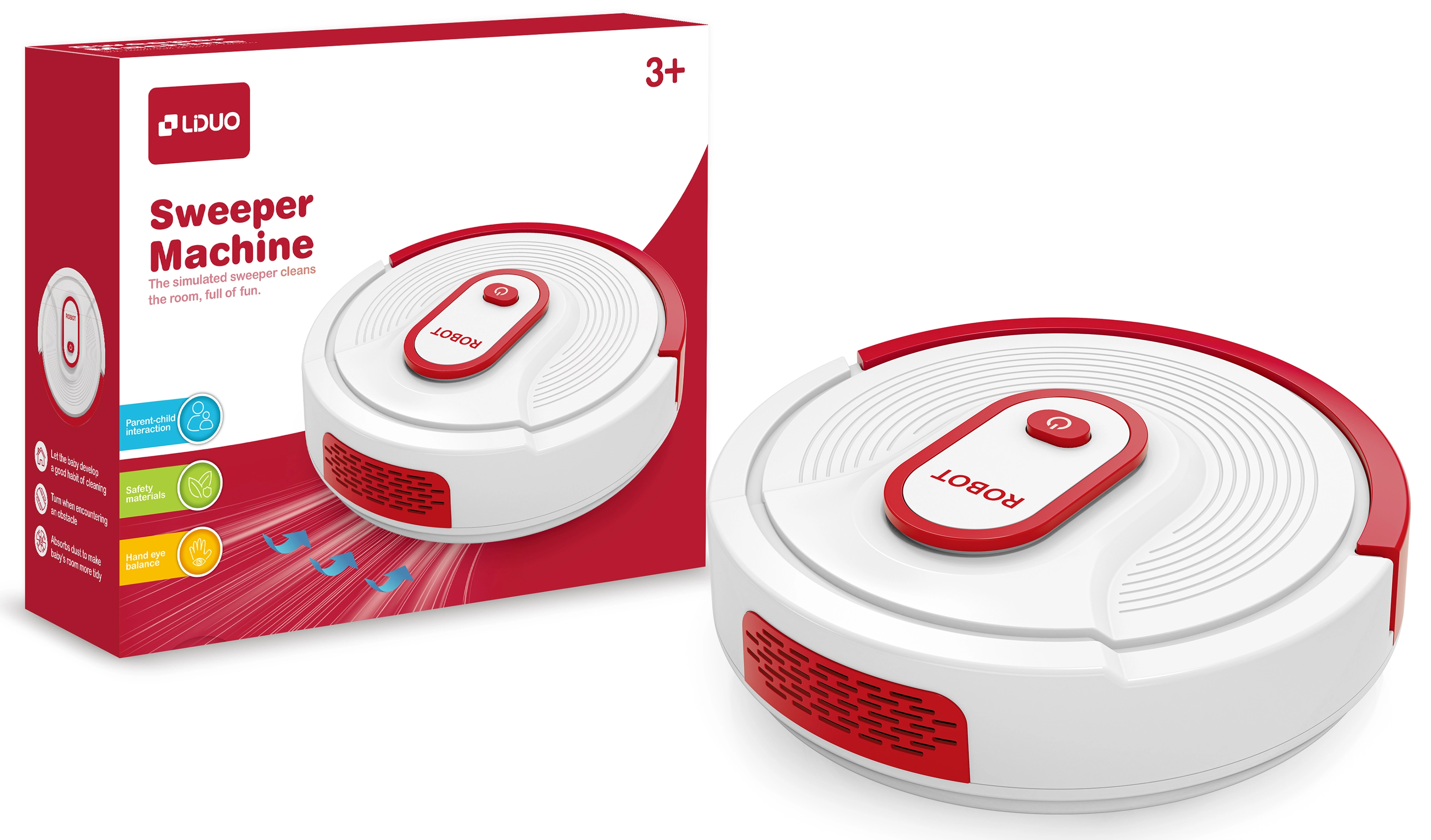 - Realistična simulacija sesanja – motivira otroke k pomoči pri pospravljanju.