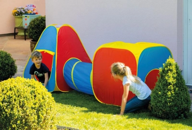 Zabavni pop-up komplet šotorov 3 v 1 spremeni sobo ali vrt v otroško igrišče. Vključuje kockasti šotor, tunel in pop-up šotor, ki jih lahko uporabljate skupaj ali posamezno. Hitro postavljanje brez truda, lahka konstrukcija in enostavno shranjevanje zagotavljajo udobno igro doma in na prostem.