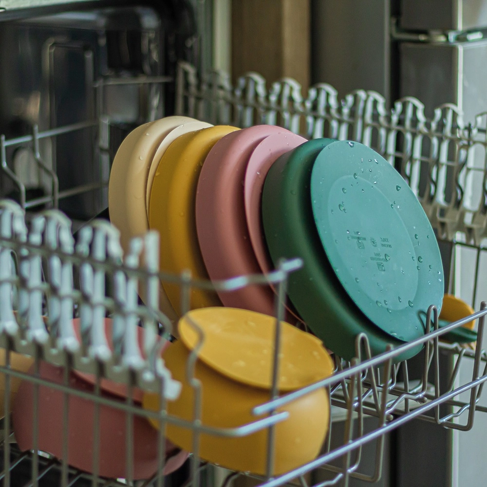 Krožnik je primeren za mikrovalovno pečico za hitro segrevanje hrane, lahko ga perete v pomivalnem stroju in shranjujete v hladilniku. Zaobljeni robovi olajšajo zajemanje in podpirajo razvoj fine motorike ter samostojno hranjenje. Minimalistična zasnova in barva Misty Green se ujemata z drugimi elementi kolekcije TAKE&MATCH – tako zlahka ustvarite usklajen jedilni set.