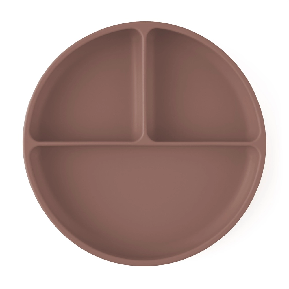 Praktičen okrogel krožnik iz živilsko varnega silikona z priseskom in tremi predelki ohranja hrano ločeno in varno na mestu. Je brez BPA, primeren za mikrovalovko, pomivalni stroj in hladilnik, idealen za samostojno hranjenje otrok od 6 mesecev dalje.